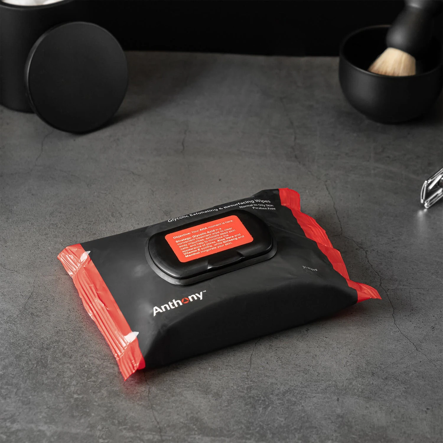 Infused with glycolic acid – a member of the AHA family of resurfacing acids – these dual-sided Glycolic Exfoliating & Resurfacing Wipes help to melt all the ‘glue’ that traps dulling dead cells to the surface and in turn, prevent daily dirt and pollutants from leading to clogged pores and ingrown hairs. Triggering regeneration to leave the skin looking refreshed and refined, each does-it-all cloth has phenomenal brightening, scar-fading, firming and fine line-diminishing benefits. The addition of vitamin E then protects and replenishes skin while the medley of menthol with aloe and ginseng helps soothe irritation and give sluggish cells’ a long-overdue jump-start.
