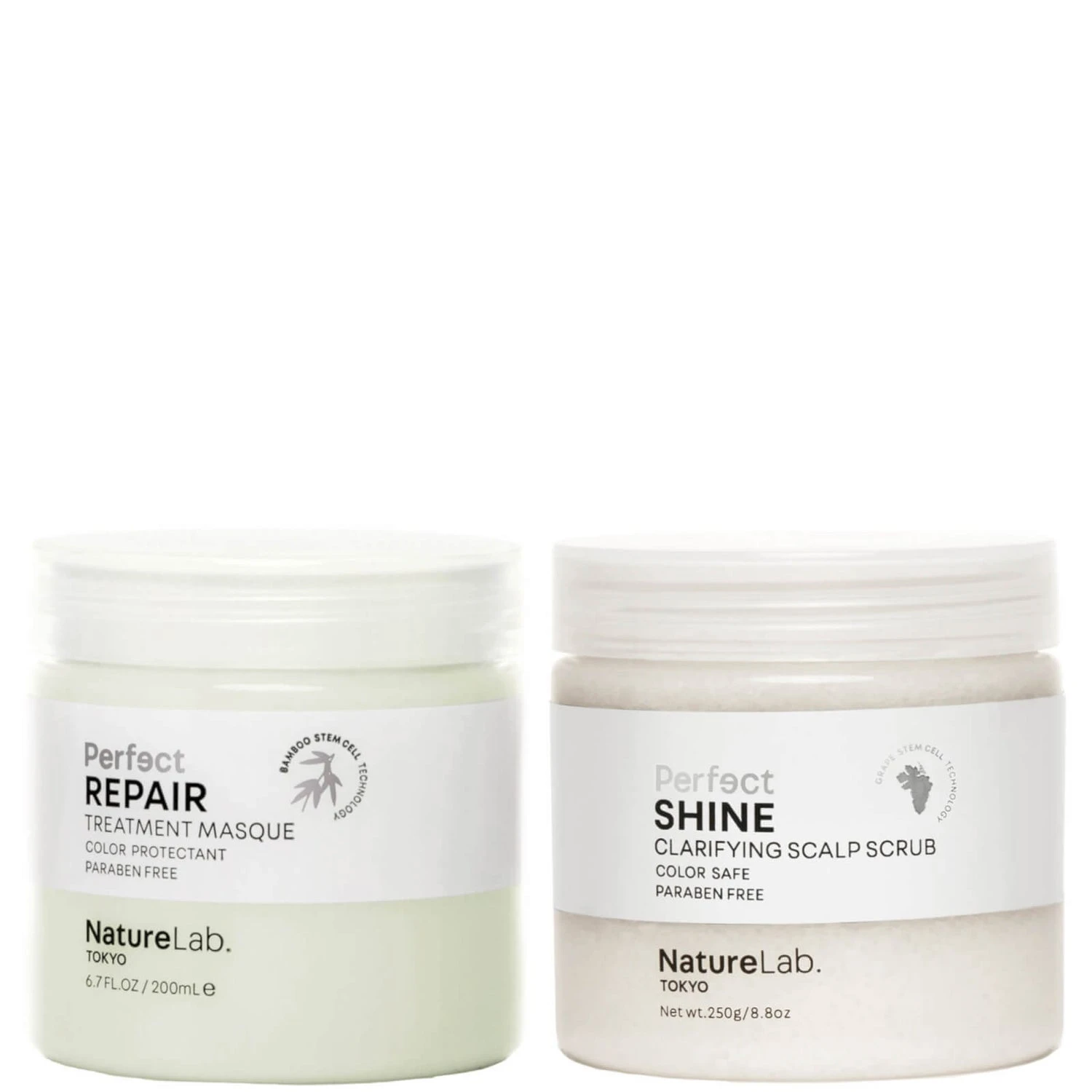 Paired up to cleanse scalps and nourish strands, the Perfect Shine Clarifying Scalp Scrub & Perfect Repair Masque duo boasts sugar crystals, sake water, argan oil and more to nourish and nurse your hair back to health.