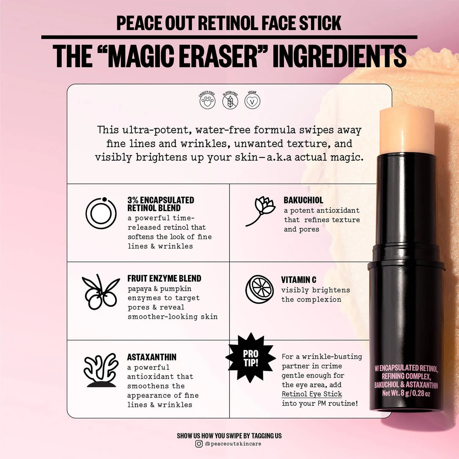 Looking for a hassle-free way to essentially press out your fine lines and wrinkles? No need to keep searching high and low when this slide-and-glide Retinol Face Stick is here to smoothen out your skin and restore your long-lost elasticity.