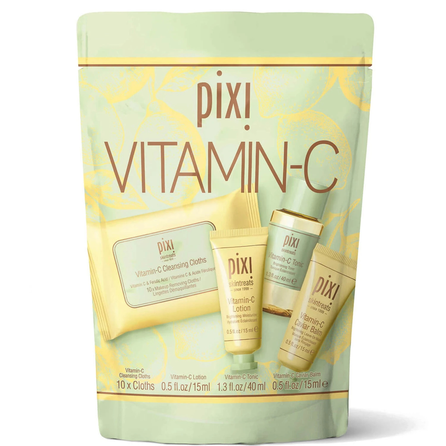 Uniting everything you need to achieve bright, radiant skin, the Vitamin- C Beauty In A Bag houses four sized-to-try essentials from Pixi’s bestselling and brightening Vitamin C range.